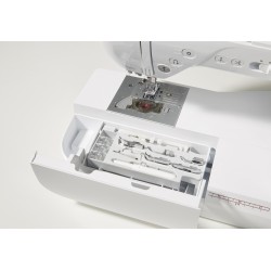 boutons M, pied boutonnière automatique A, jeu d'aiguilles (2 aiguilles 75, 2 aiguilles 90, 2 aiguilles stretch 90),